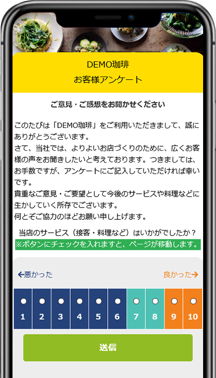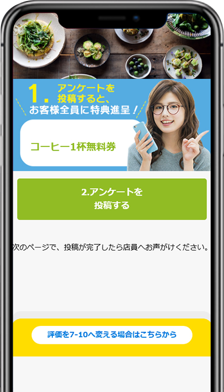 7~10の良い評価だった場合、口コミサイトの書き込み画面へ誘導いたします。