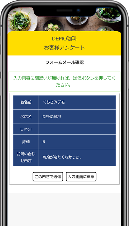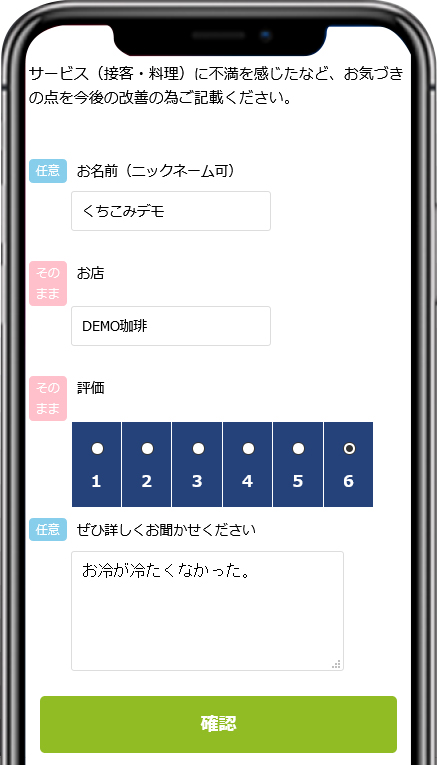 1~6の低い評価だった場合、アンケート結果は管理ページに直接届きます。